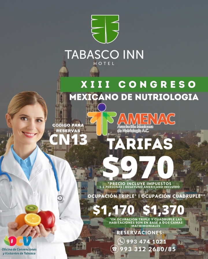 (Incluye impuestos, desayuno buffet y Wi-Fi) - Usa el código: Congreso Mexicano de Nutriología