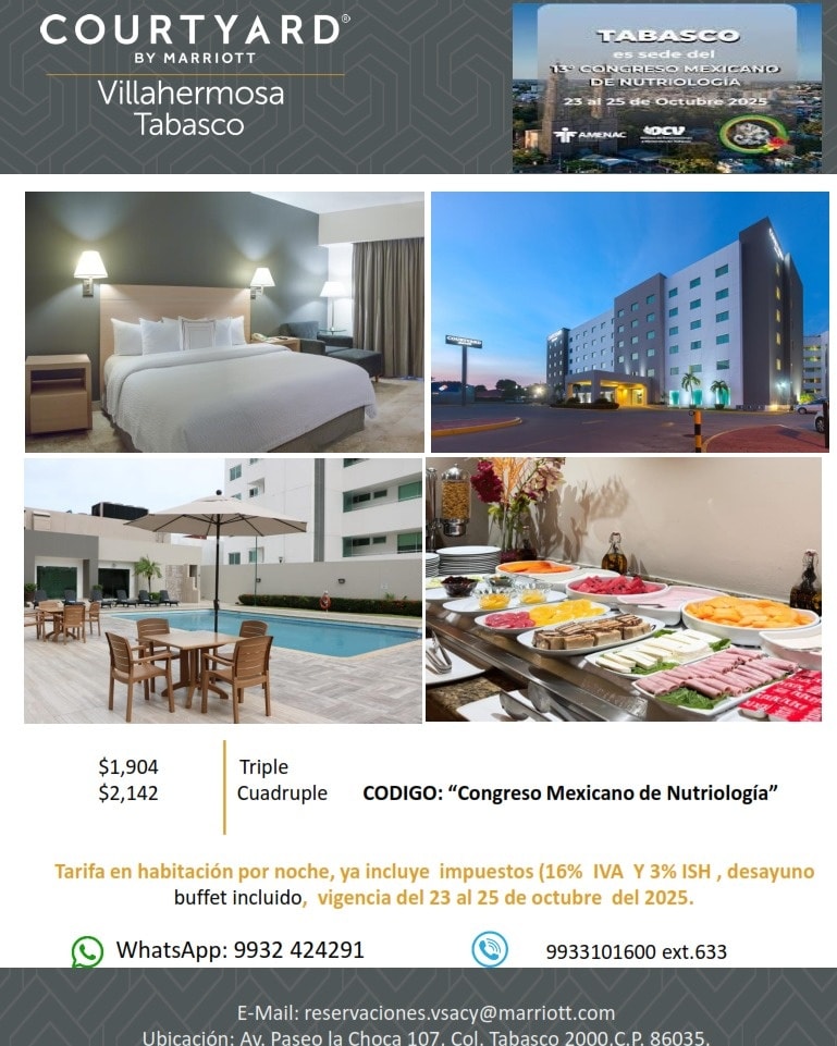 El Courtyard by Marriott Villahermosa Tabasco te ofrece tarifas preferenciales para que vivas la mejor experiencia durante el congreso.