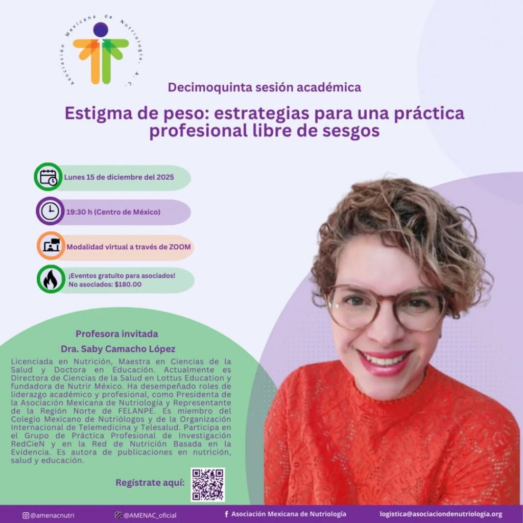 La Asociación Mexicana de Nutriología, A.C. te invita a su Decimoquinta Sesión Académica: «Estigma de peso: estrategias para una práctica profesional libre de sesgos»