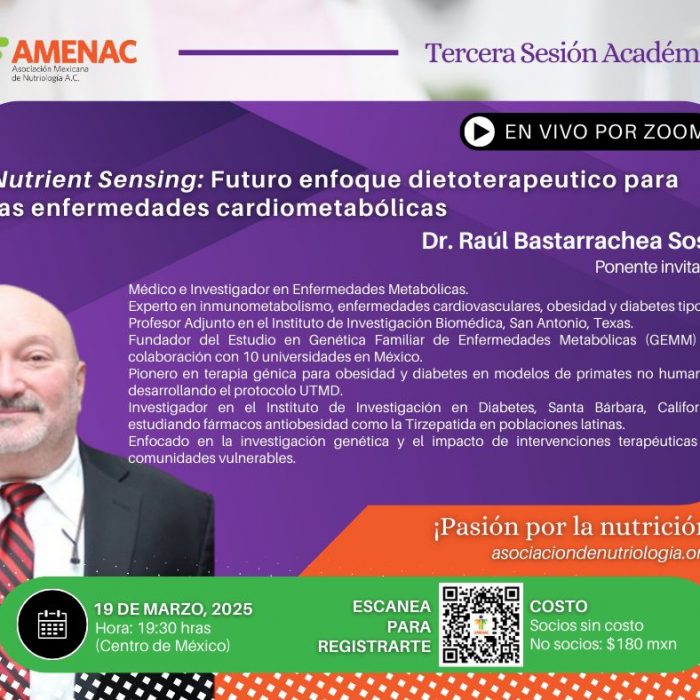 Sesión Académica Nutrient Sensing – Futuro Enfoque Dietoterapéutico para las Enfermedades Cardiometabólicas Te invitamos...
